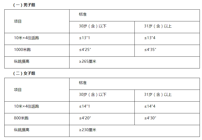 (六)放棄體能測評或體能測評不合格的,不可以參加后續環(huán)節,不再遞補人員。