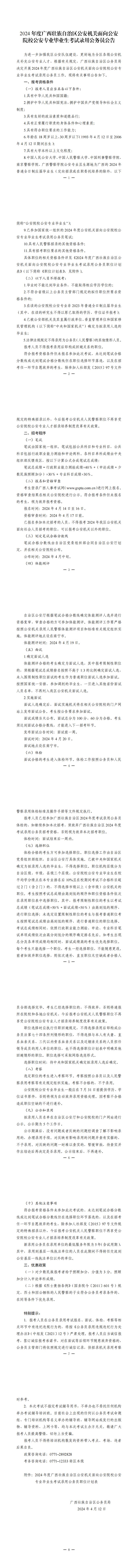 原文標題:2024年度廣西壯族自治區公安機關(guān)面向公安院校公安專(zhuān)業(yè)畢業(yè)生考試錄用公務(wù)員公告
