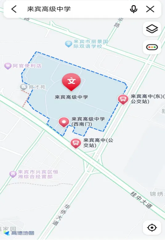 ▲來(lái)賓高級中學(xué)交通指引圖(來(lái)賓市興賓區桂中大道588號)。