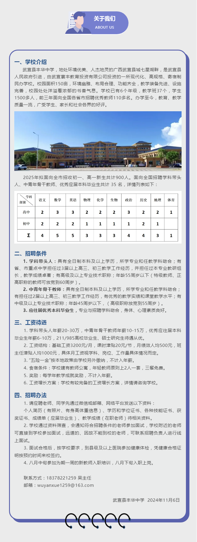 原文標題:廣西來(lái)賓市武宣縣豐華中學(xué)2025年教師招聘簡(jiǎn)章