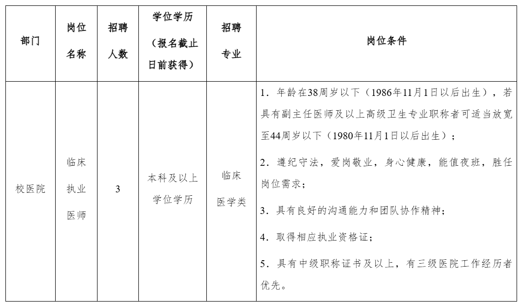 擬公開(kāi)招聘醫務(wù)工作人員3名,具體崗位及相關(guān)條件要求詳見(jiàn)下表: