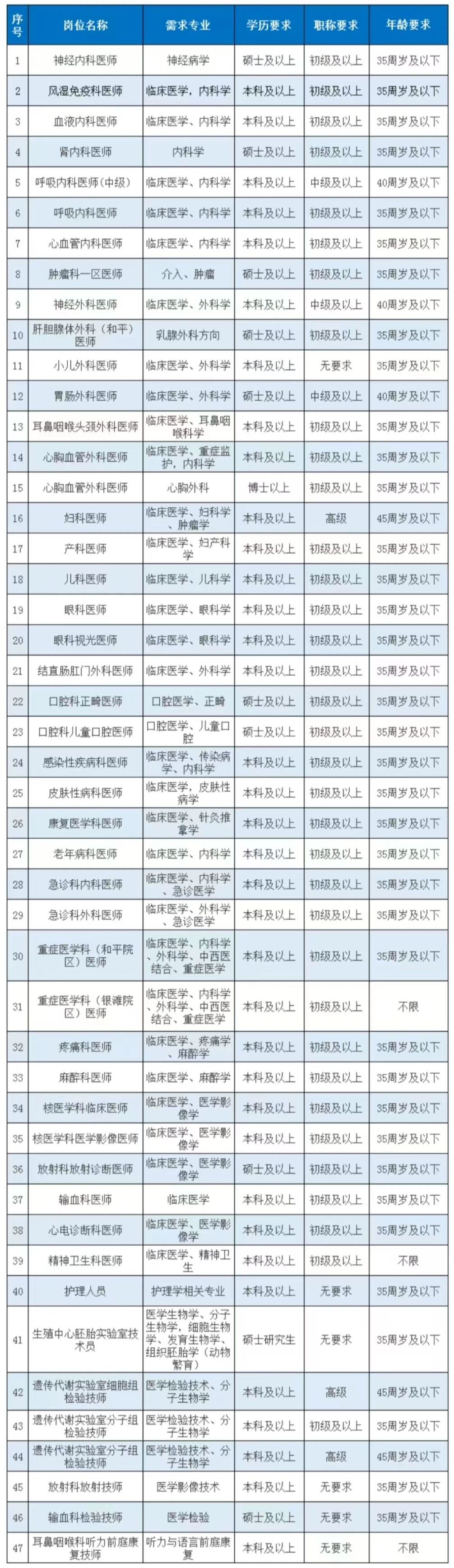 根據我院人才及學(xué)科發(fā)展需要,現面向社會(huì )招聘醫師、技師等崗位人才若干名,具體如下: