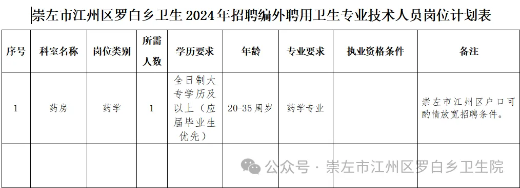 原文標題:崇左市江州區羅白鄉衛生院招聘公告