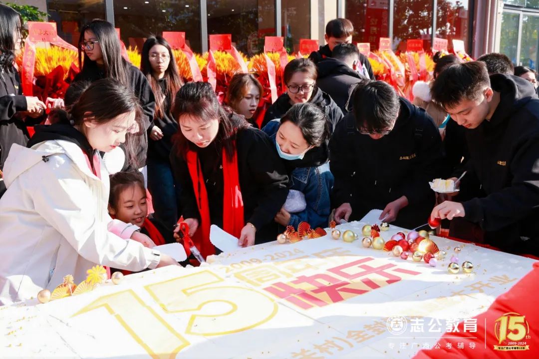 這個(gè)蛋糕不僅象征著(zhù)志公走過(guò)的15個(gè)輝煌歲月,更代表了志公未來(lái)更加美好的明天。在場(chǎng)的所有員工都分享了這份喜悅和甜蜜,共同祝愿志公教育越來(lái)越好。