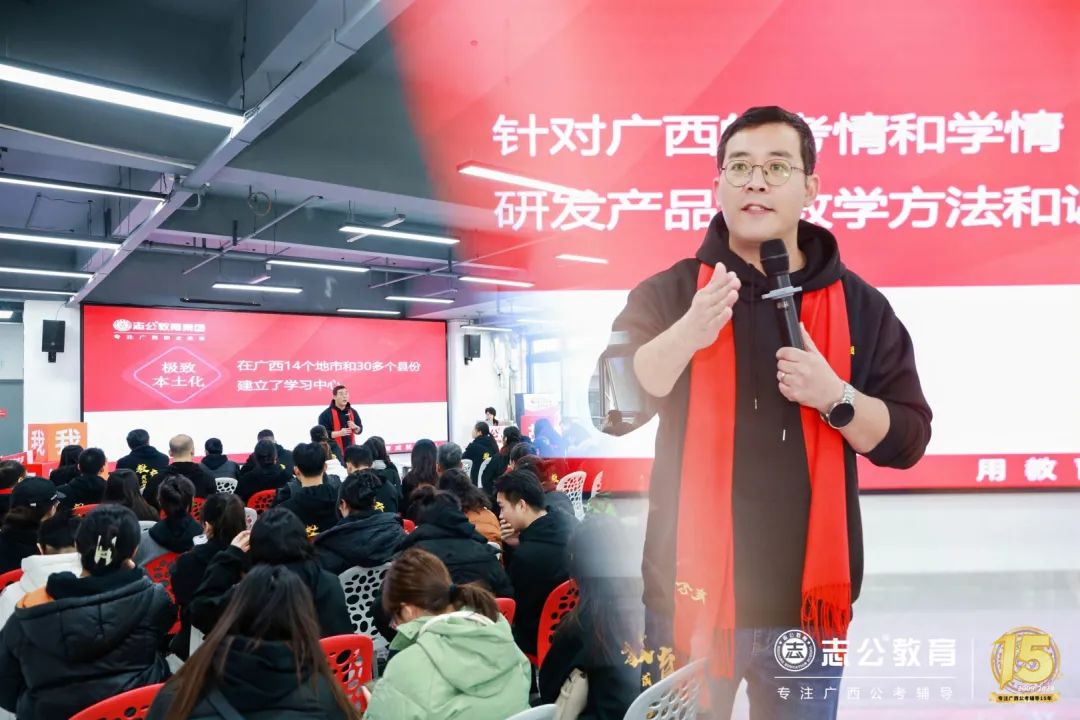 第一是極致本土化,董事長(cháng)李勇表示這是志公教育集團安身立業(yè)的根本,他表示這要求對廣西公職考試響應速度要快,針對廣西的考情和學(xué)情,研發(fā)產(chǎn)品教學(xué)方法和課程資料,這是對教研院的考驗,明確表示未來(lái)要把錢(qián)投在學(xué)員的服務(wù)上、老師的數量、學(xué)習班主任。志公教育現在有志公教育(保稅區)全封閉基地,志公教育(中關(guān)村)全封閉基地,未來(lái)希望在桂林,柳州,百色等地也建立基地,讓志公教育在八桂大地生根,實(shí)現各美其美,美美與共。