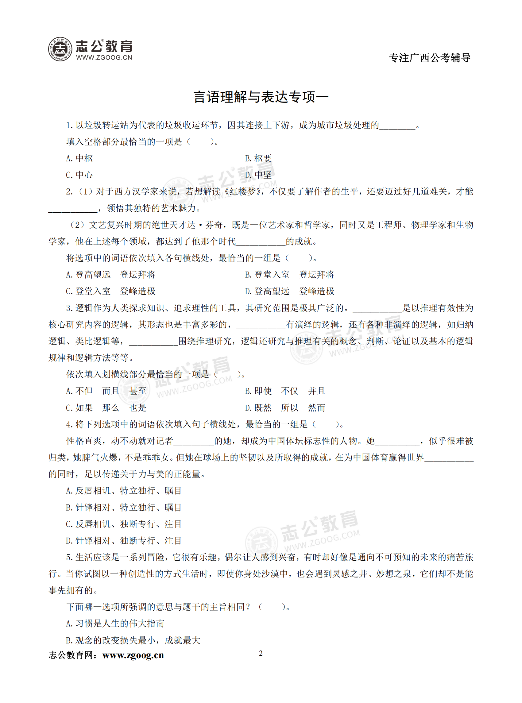 【公考模塊練習】言語(yǔ)理解題一(試題)