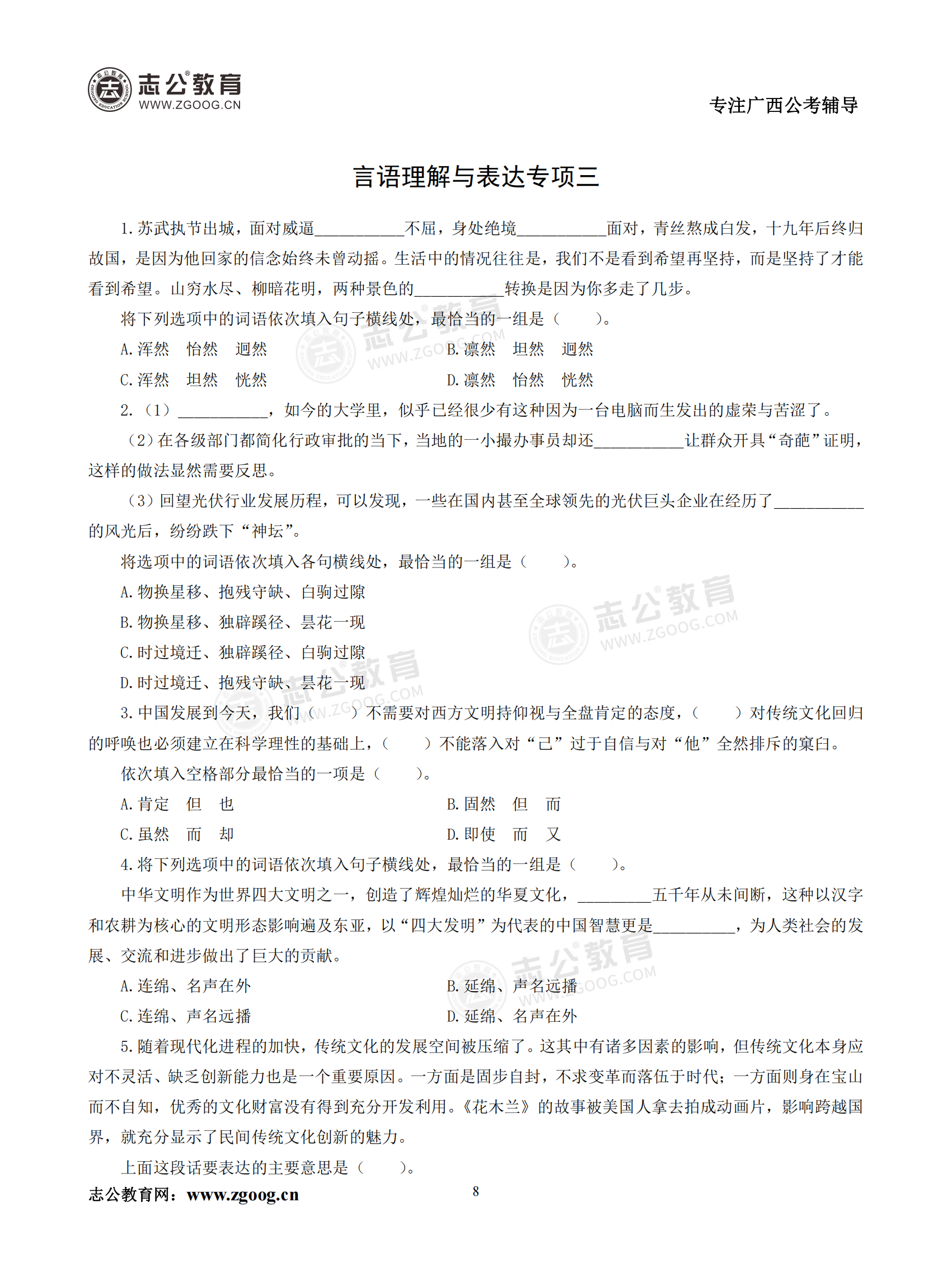 【公考模塊練習】言語(yǔ)理解題三(試題)