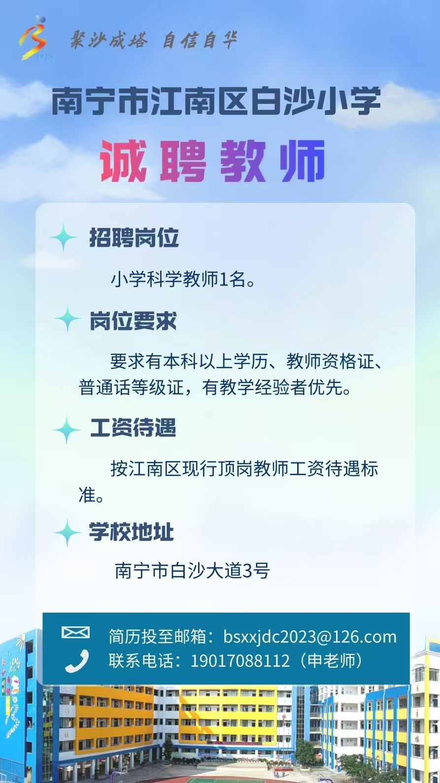 2025年南寧市江南區白沙小學(xué)誠聘教師1人