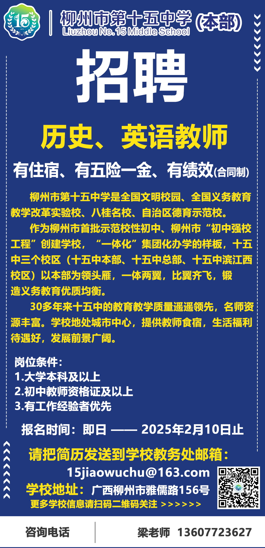 2025年柳州市第十五中學(xué)本部誠聘歷史、英語(yǔ)老師