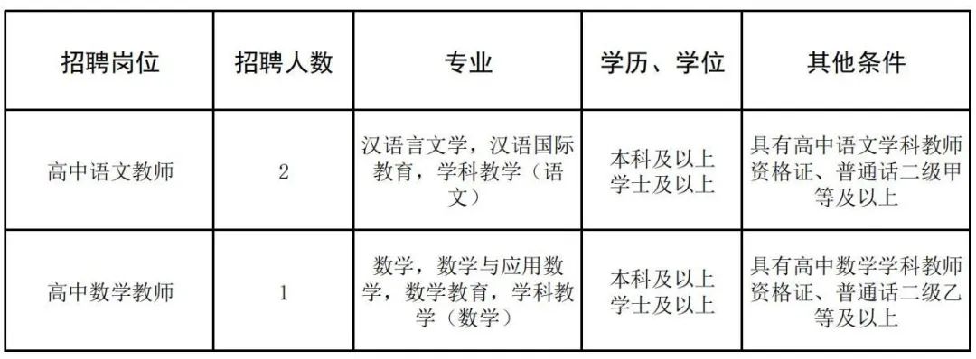 根據發(fā)展需要,學(xué)校擬招聘高中語(yǔ)文、高中數學(xué)頂崗教師共3人,具體招聘信息如下: