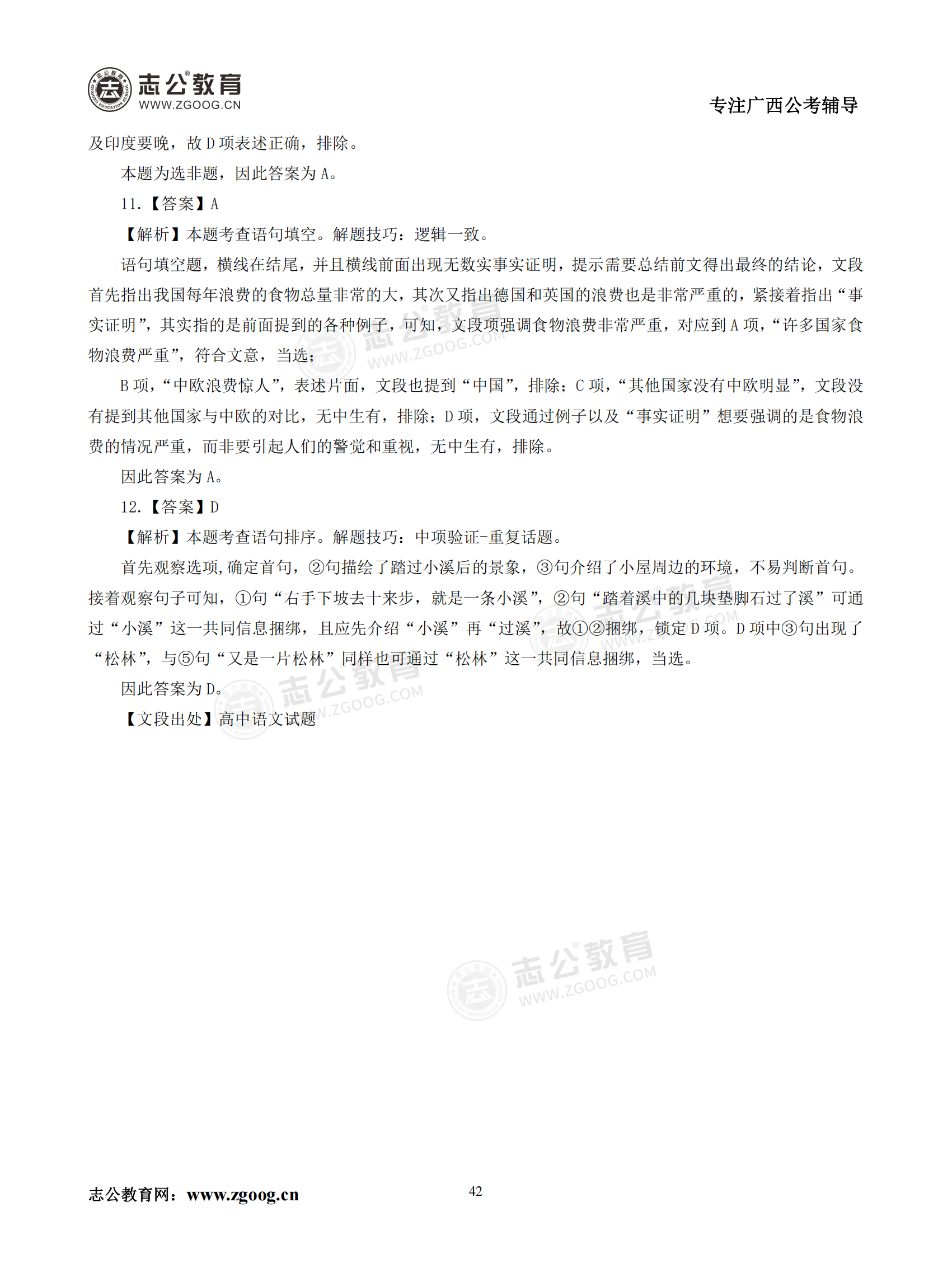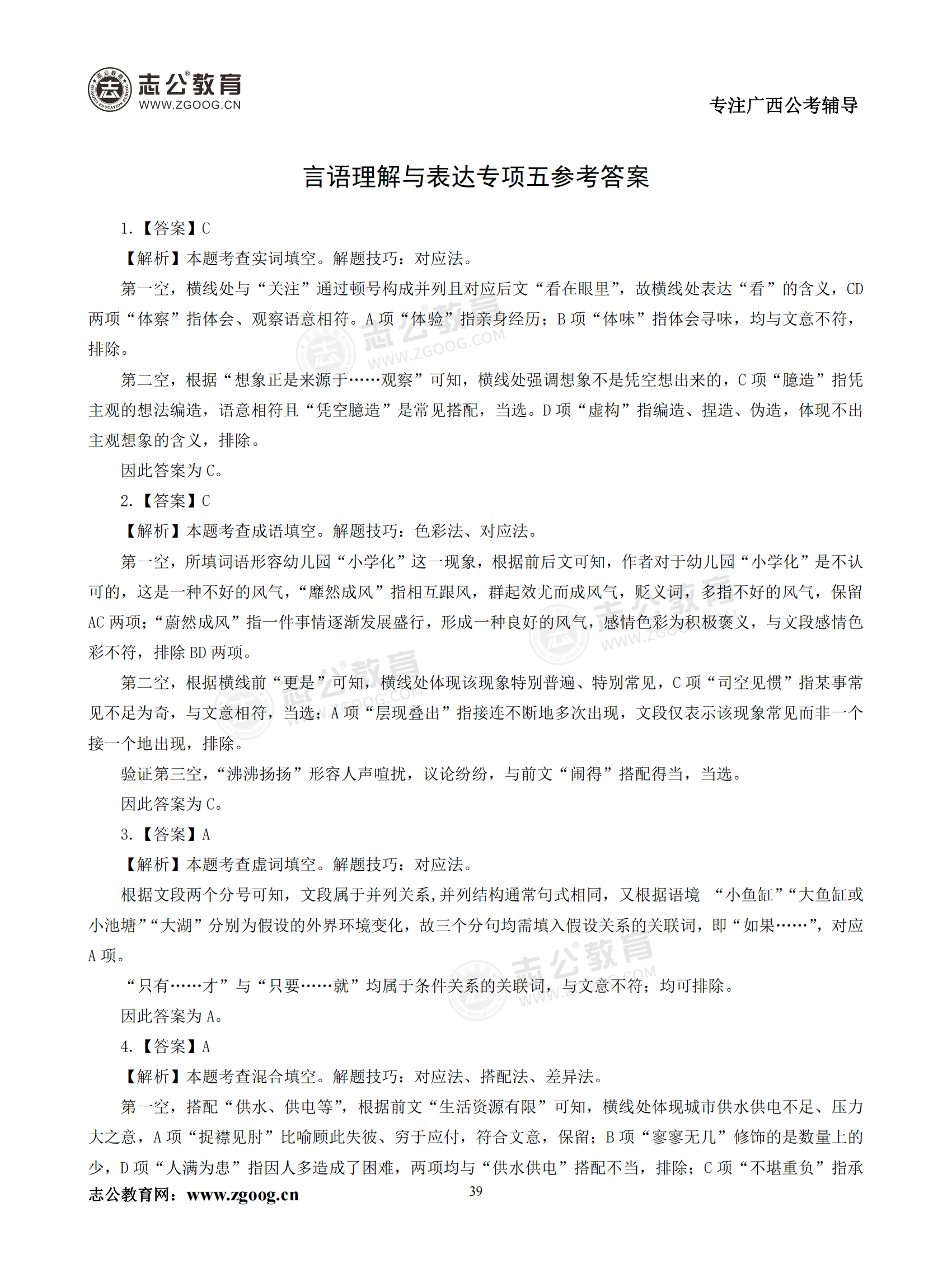 【公考模塊練習】言語(yǔ)理解題五(答案)
