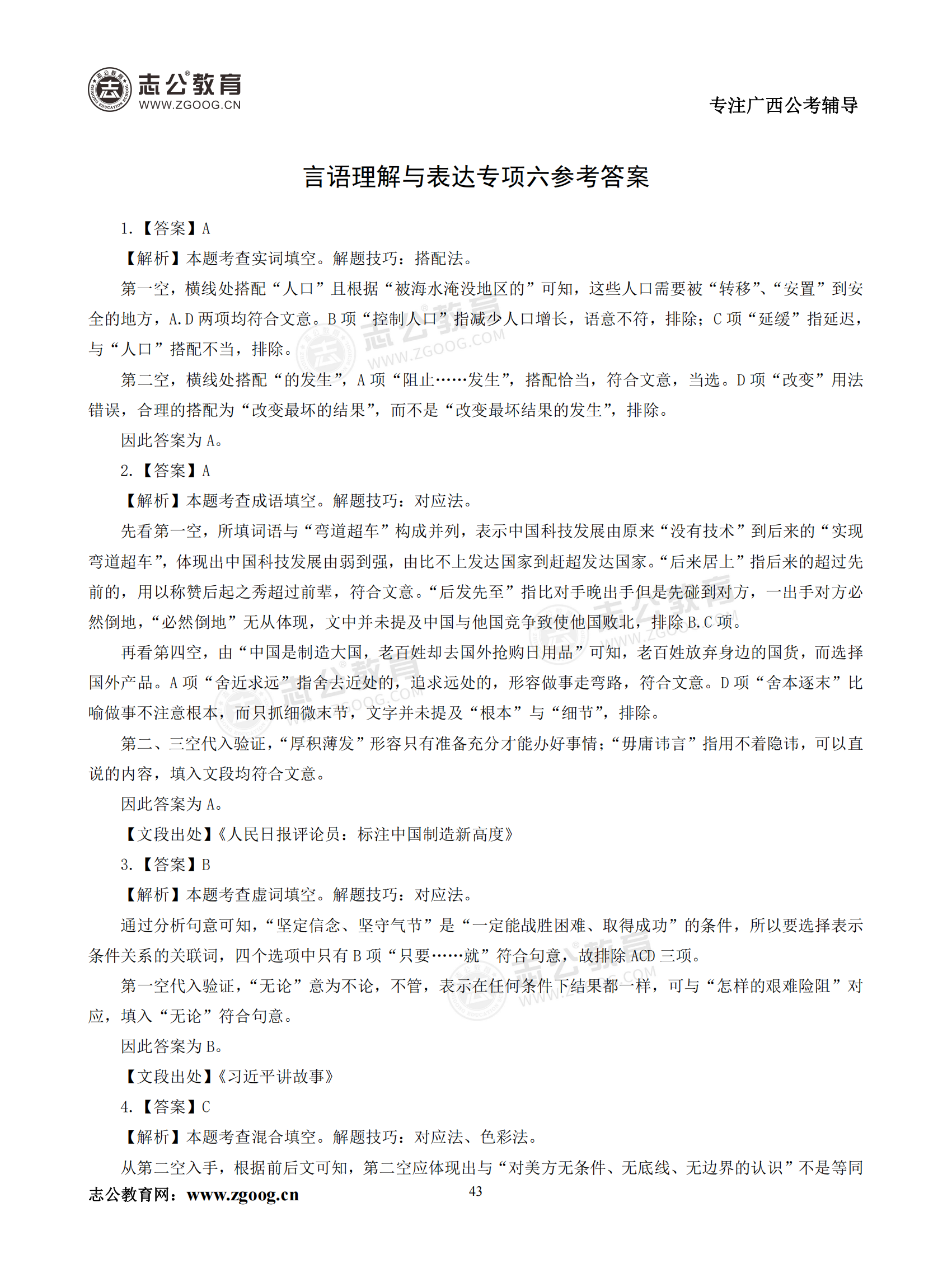 【公考模塊練習】言語(yǔ)理解題六(答案)