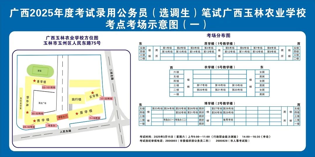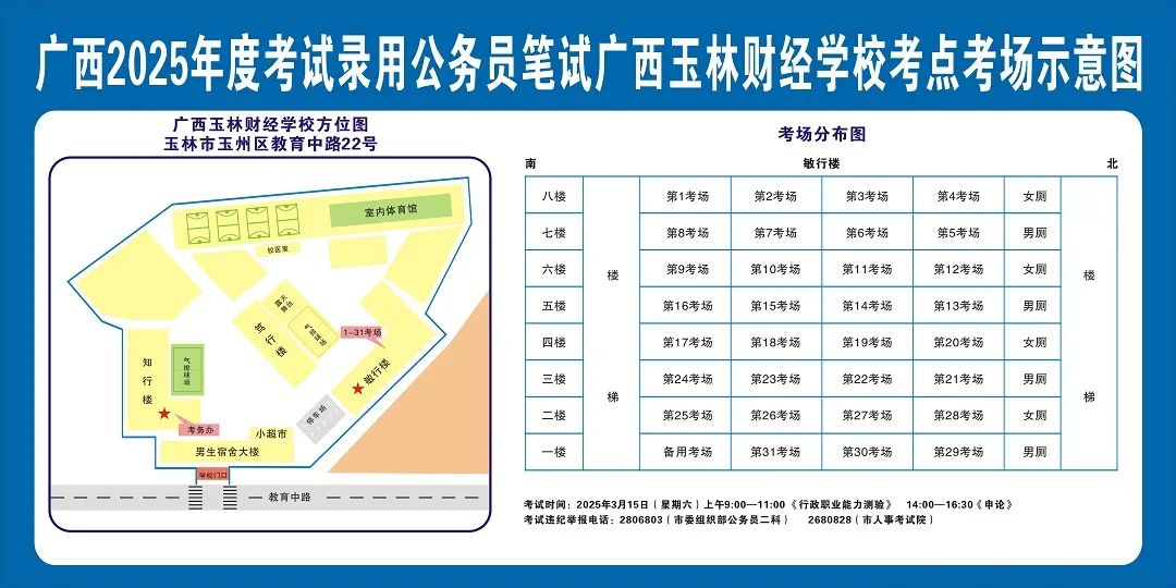 廣西2025年度考試錄用公務(wù)員(選調生)筆試將于3月15日舉行,為進(jìn)一步提升玉林考區服務(wù)保障質(zhì)量,現就有關(guān)注意事項提示如下,請廣大考生做好應試準備工作,準確掌握考試時(shí)間、考點(diǎn)地址及相關(guān)注意事項。
