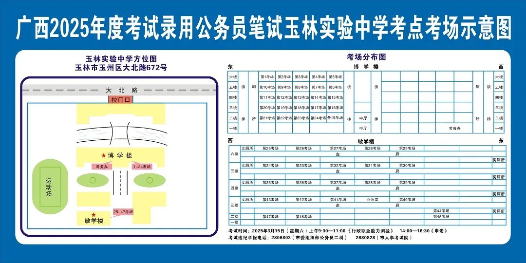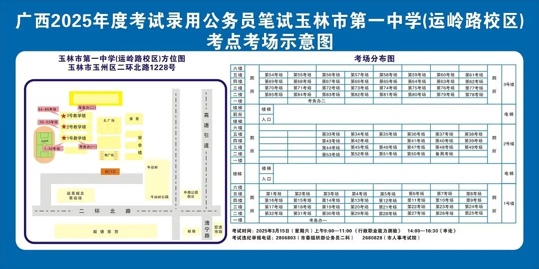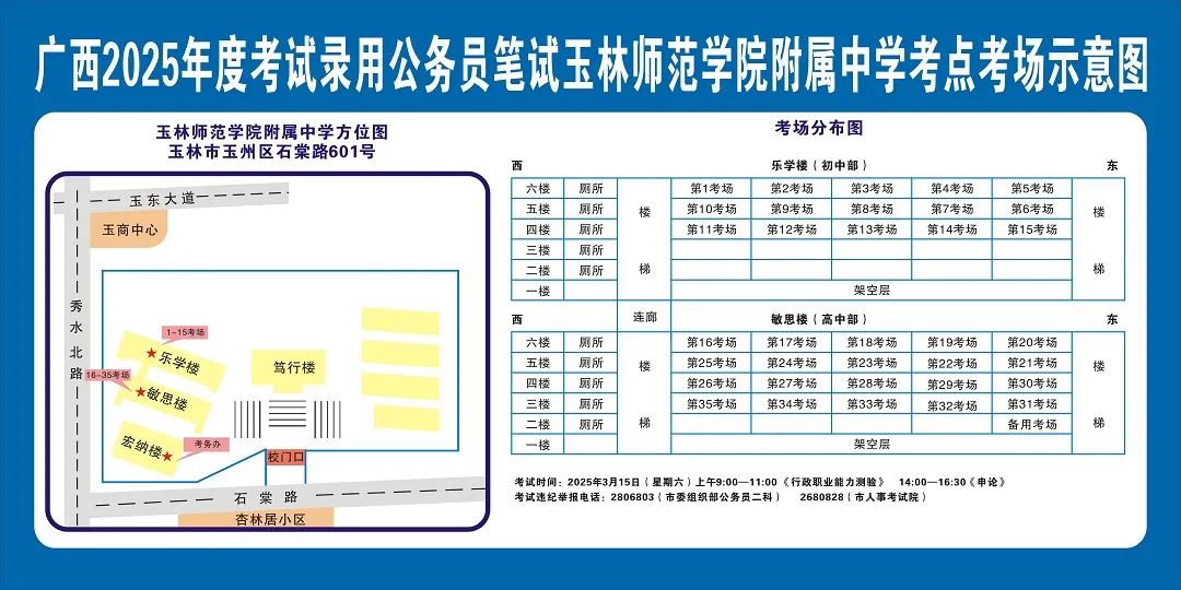 除考試當天考生可以進(jìn)入考點(diǎn)外,考生不得提前進(jìn)入考點(diǎn)查看考場(chǎng)(學(xué)校將在大門(mén)處擺放考場(chǎng)分布示意圖),玉林考區11個(gè)考點(diǎn)的考場(chǎng)布置情況如下: