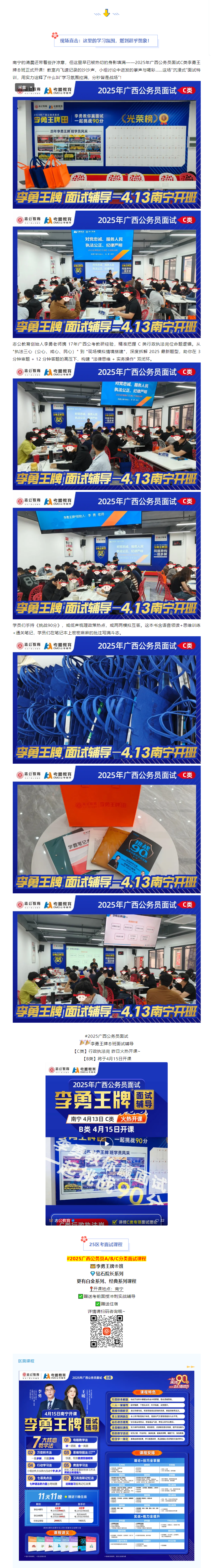 2025年廣西公務(wù)員面試戰役已打響!想在C類(lèi)崗位面試中一舉奪魁?4月13日,南寧考生翹首以盼的 【李勇王牌®班面試輔導C類(lèi)課程】 火熱開(kāi)課!這里沒(méi)有枯燥的理論堆砌,只有 “全員沉浸、全程高能” 的實(shí)戰練兵場(chǎng),助你挑戰面試90分!