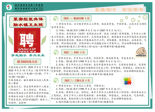 原文標題:融水苗族自治縣融水鎮衛生院招聘