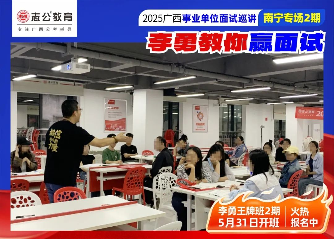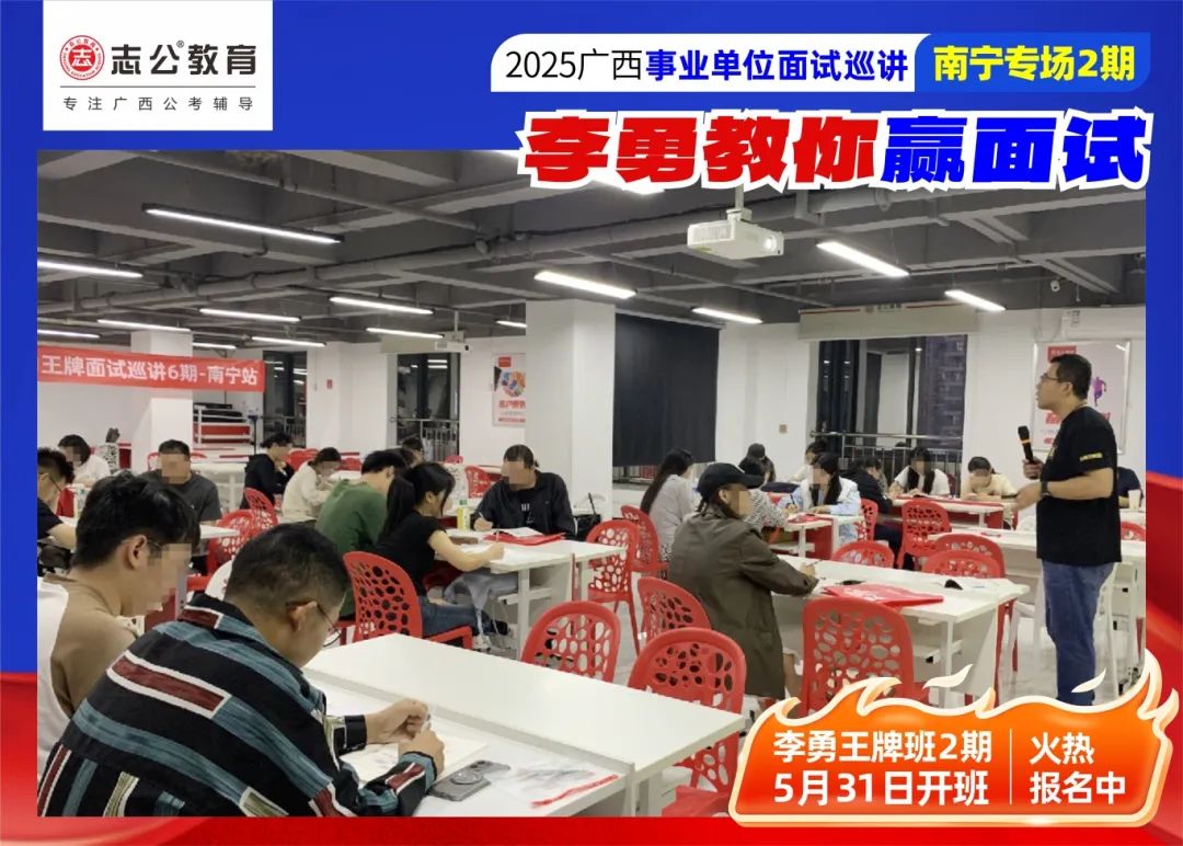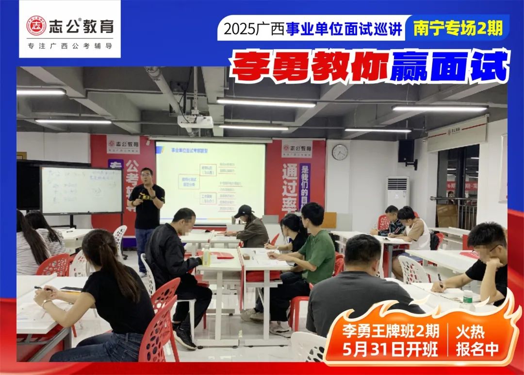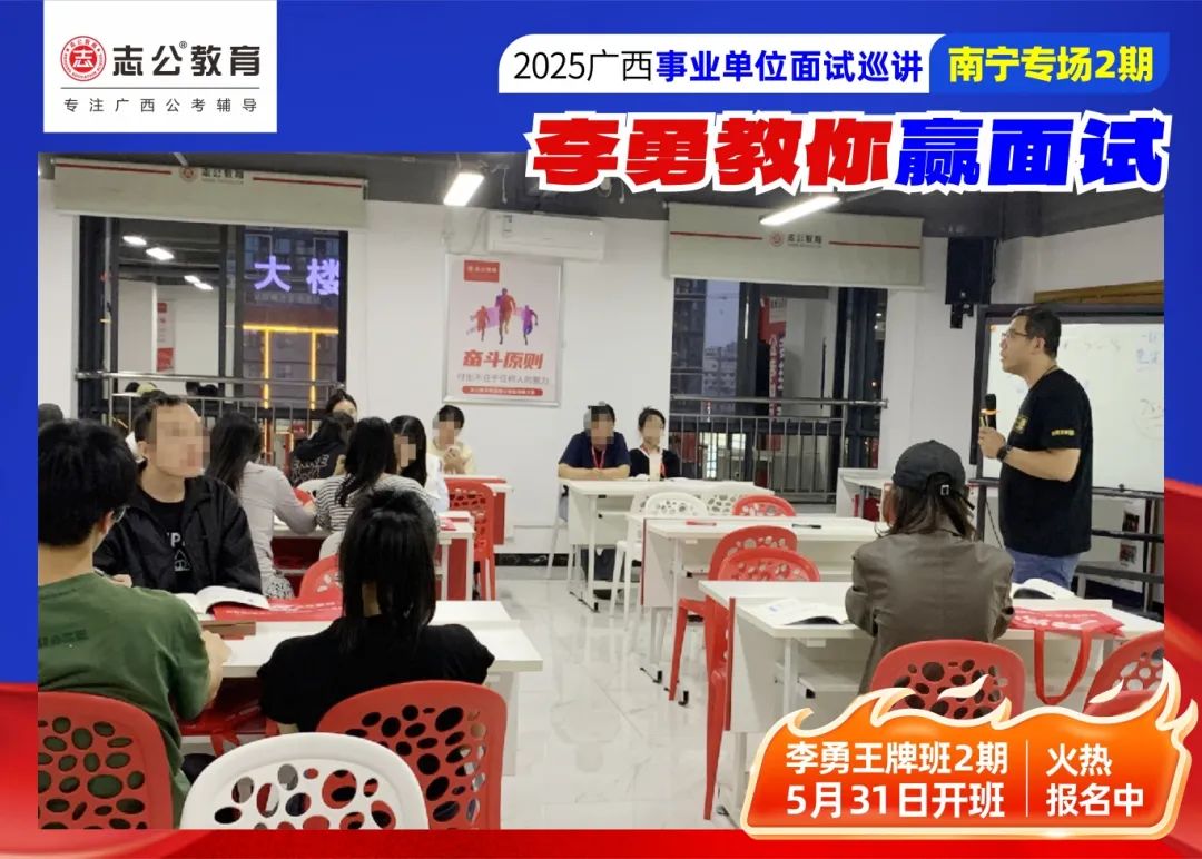 隨著(zhù)2025廣西事業(yè)單位——李勇教你贏(yíng)面試【南寧專(zhuān)場(chǎng)2期】線(xiàn)下巡講落幕,這場(chǎng)"面試攻堅戰",不僅點(diǎn)燃了備考熱情,更讓志公教育"幫助人才實(shí)現更高質(zhì)量的就業(yè)"的使命,在八桂大地結出更多碩果。