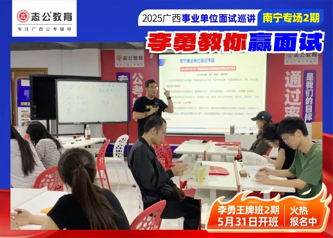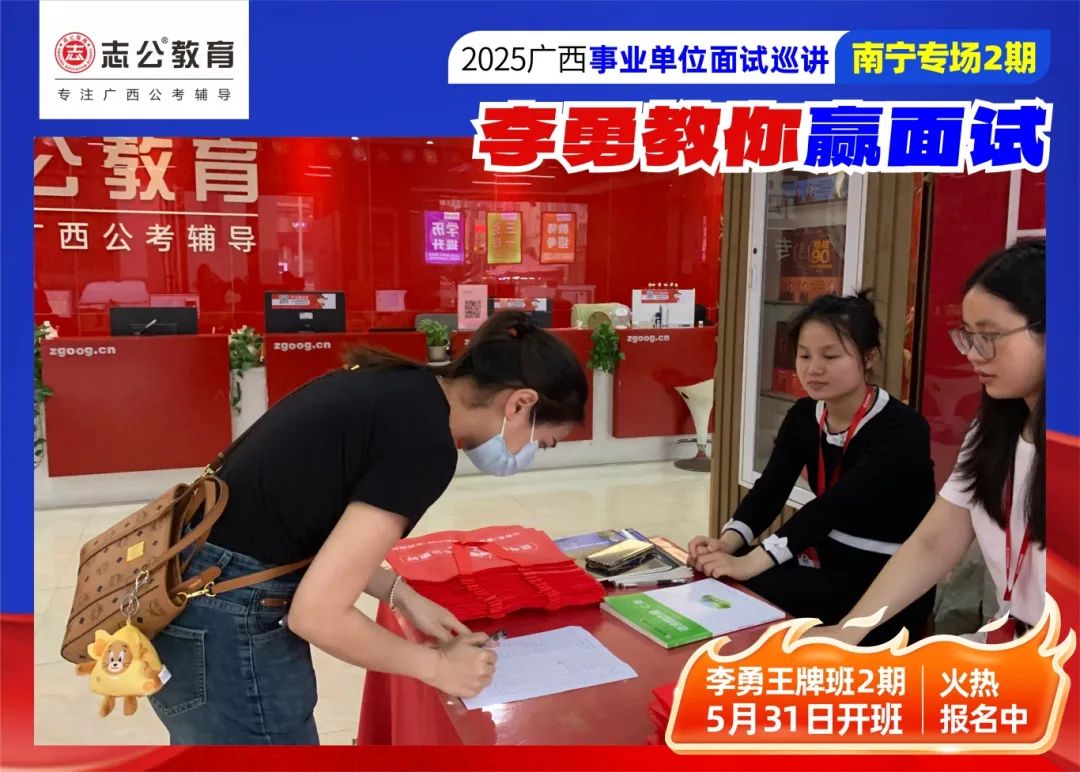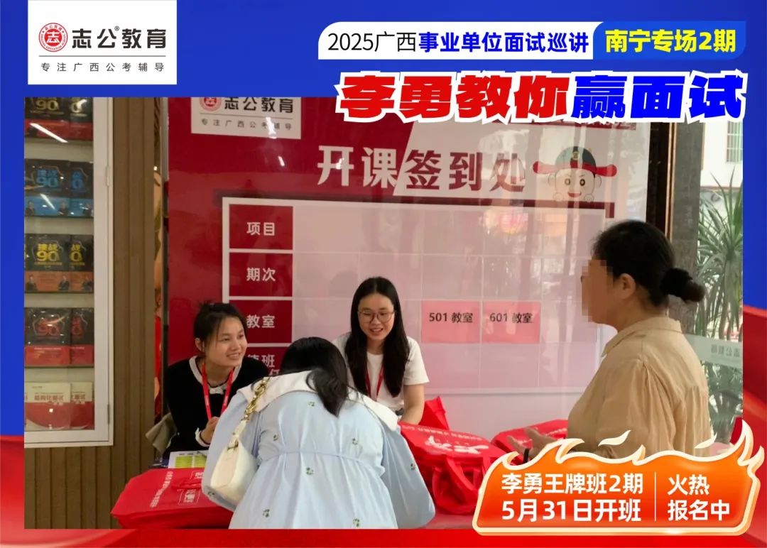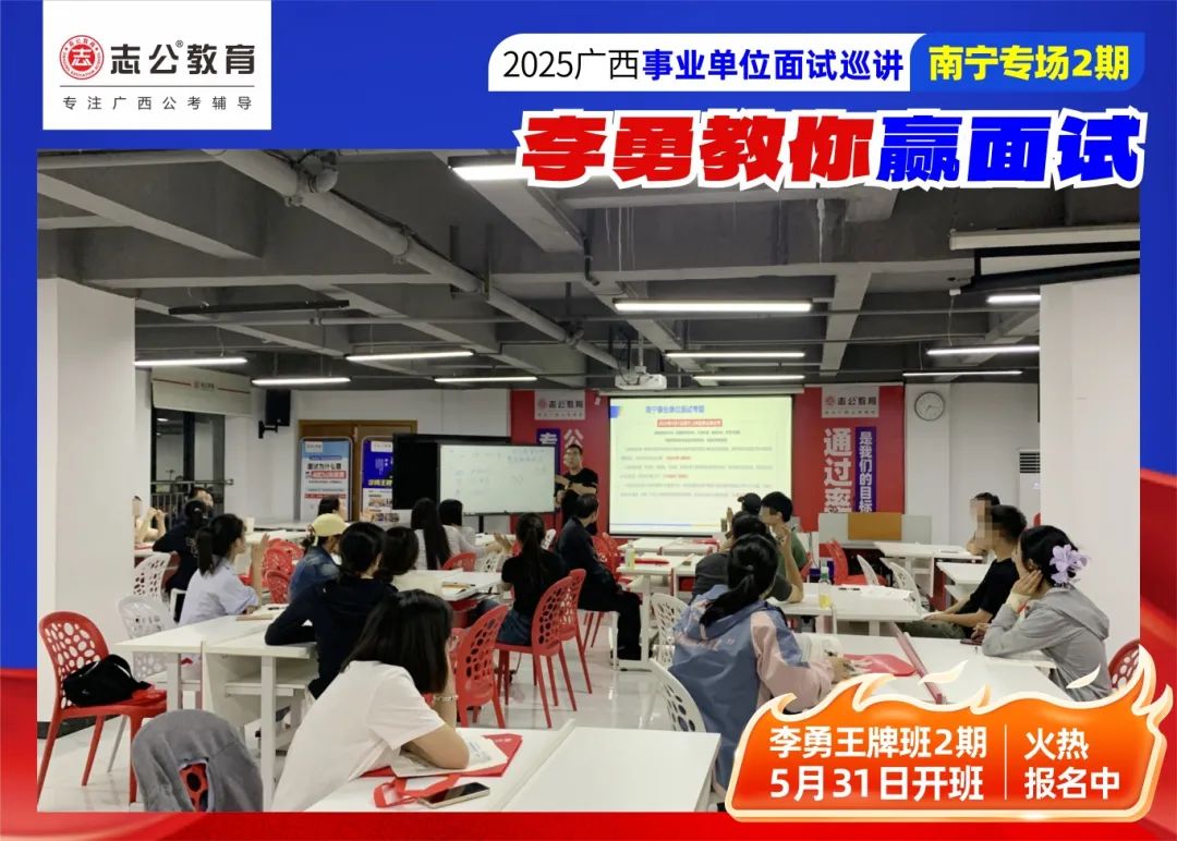 隨著(zhù)2025廣西事業(yè)單位——李勇教你贏(yíng)面試【南寧專(zhuān)場(chǎng)2期】線(xiàn)下巡講落幕,這場(chǎng)"面試攻堅戰",不僅點(diǎn)燃了備考熱情,更讓志公教育"幫助人才實(shí)現更高質(zhì)量的就業(yè)"的使命,在八桂大地結出更多碩果。