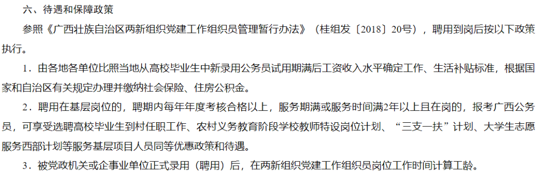 如果是符合條件的黨員朋友可要抓住這次機會(huì )了??,不僅“由各地各單位比照當地從高校畢業(yè)生中新錄用公務(wù)員試用期滿(mǎn)后工資收入水平確定工作、生活補貼標準,根據國家和自治區有關(guān)規定辦理并繳納社會(huì )保險、住房公積金。”服務(wù)期滿(mǎn)還參照三支一扶等服務(wù)基層項目人員同等優(yōu)惠政策和待遇,而且!這個(gè)考試只用筆試,不用面試,香,實(shí)在是太香了!