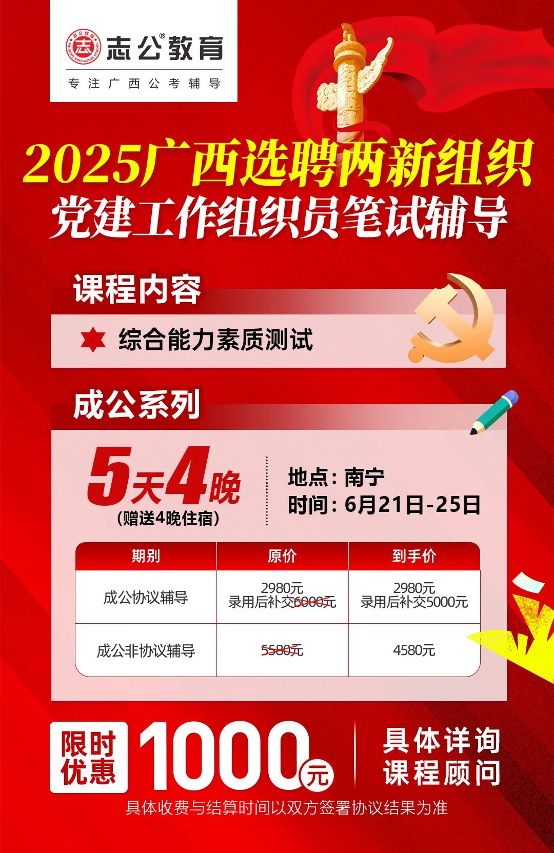 報名入口開(kāi)通!2025年廣西壯族自治區選聘兩新組織黨建工作組織員今起報名,附免費備考資料!