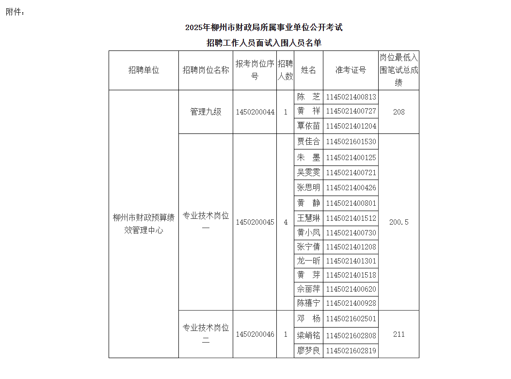 附件:《2025年柳州市財政局下屬事業(yè)單位公開(kāi)考試招聘工作人員面試入圍人員名單》