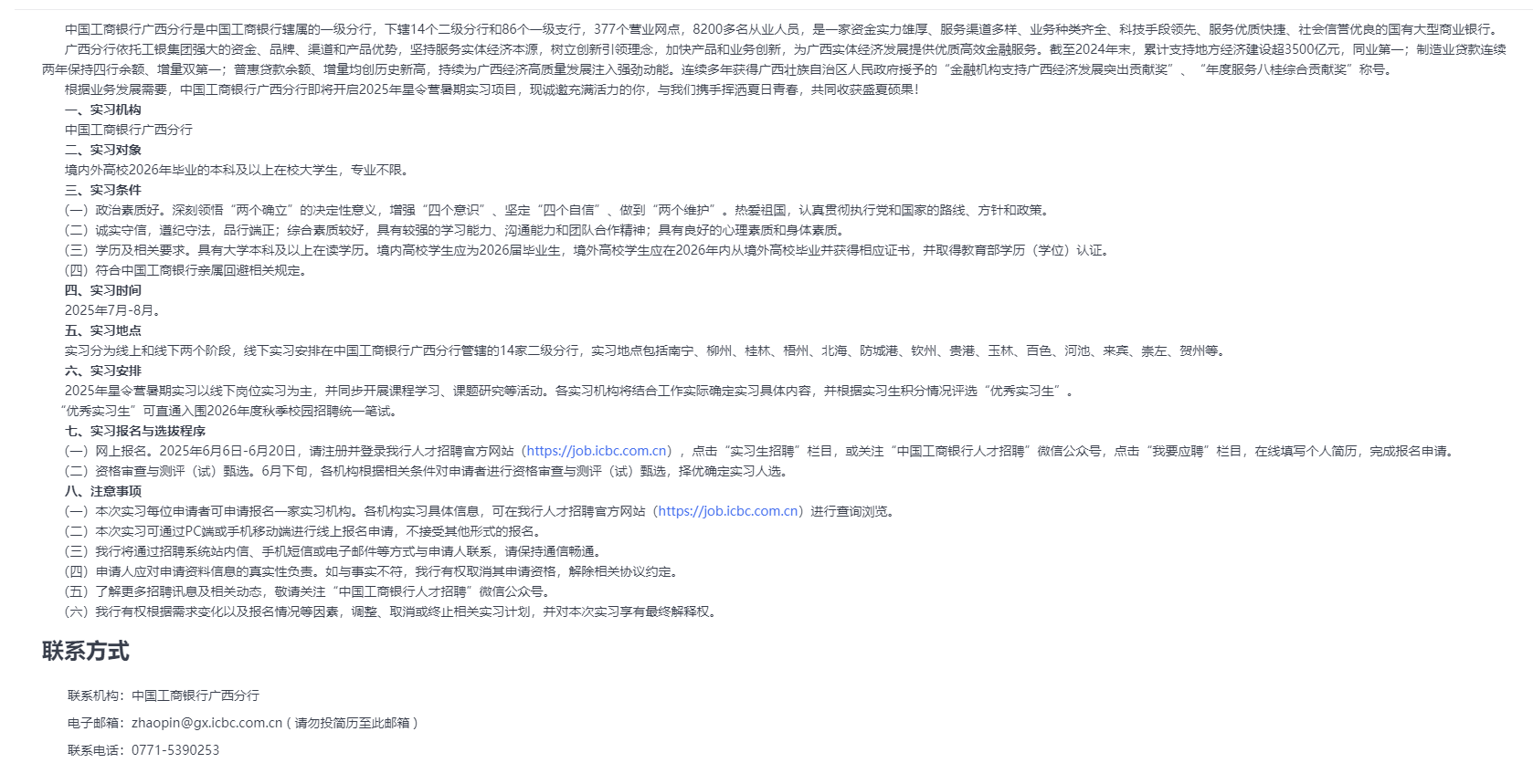 中國工商銀行廣西分行2025年星令營(yíng)暑期實(shí)習公告