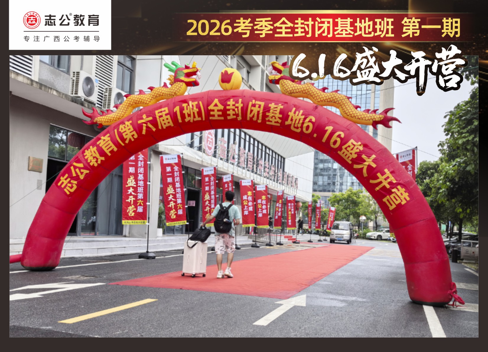 6月16日,志公教育基地班在萬(wàn)眾翹首以盼中,正式拉開(kāi)帷幕!來(lái)自各地的學(xué)員們,懷揣著(zhù)夢(mèng)想與憧憬匯聚于此,以“躍龍門(mén)”的非凡勇氣和“走紅毯”般的自信姿態(tài),鄭重地書(shū)寫(xiě)下屬于自己的“上岸心愿”。在這場(chǎng)充滿(mǎn)儀式感與溫馨氛圍的啟程儀式中,開(kāi)啟了新篇章。