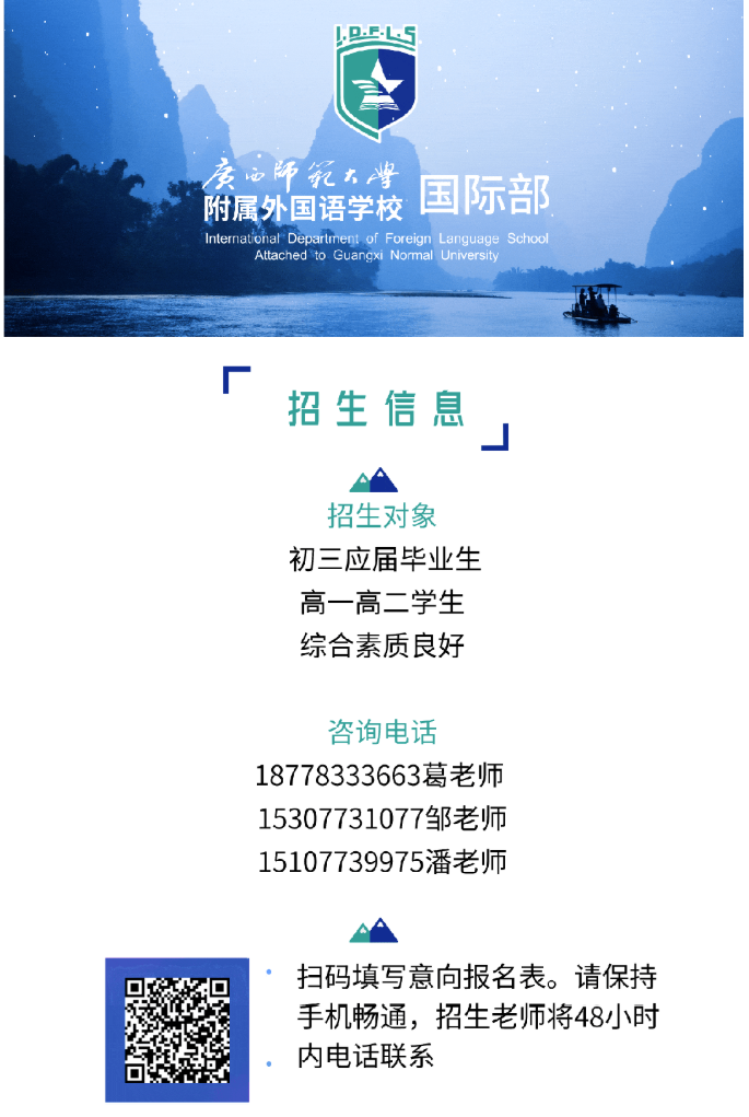 校區地址:桂林市七星區育才路15號廣西師范大學(xué)育才校區附外國際部