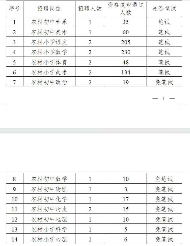 根據《桂林市雁山區2025年特崗教師招聘公告》要求“筆試按實(shí)際通過(guò)資格復審人數開(kāi)考;招聘崗位資格復審通過(guò)人數不足20人免筆試,資格復審通過(guò)人數20人以上(含20人,研究生及以上學(xué)歷不包含在內,研究生及以上學(xué)歷免筆試),需進(jìn)行筆試。”經(jīng)現場(chǎng)資格復審,桂林市雁山區2025年特崗教師招聘筆試、免筆試學(xué)科崗位情況如下:
