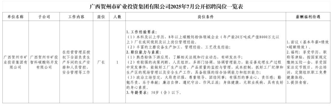 1.廣西賀州市礦業(yè)投資集團有限公司2025年7月公開(kāi)招聘崗位一覽表