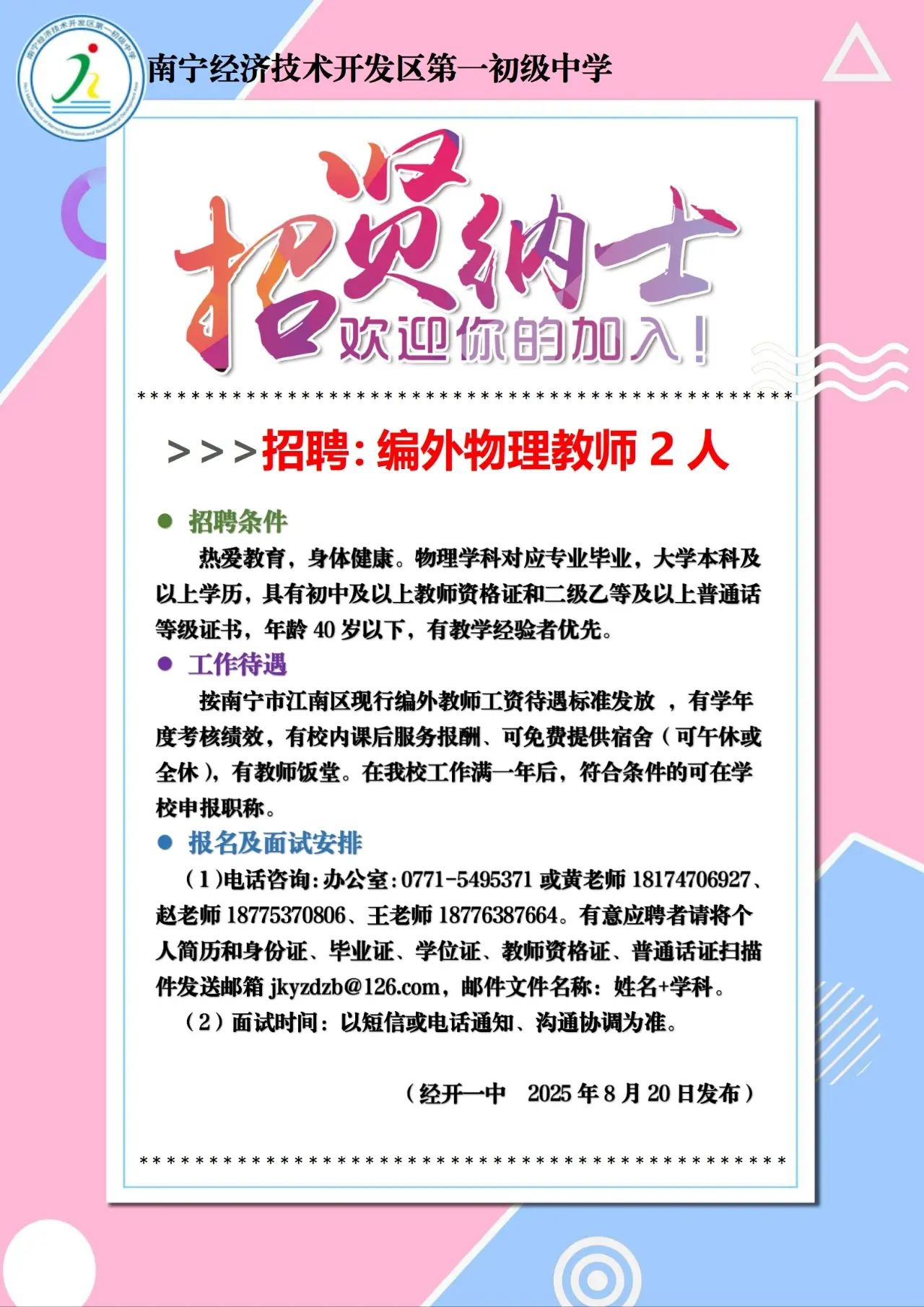 2025年南寧經(jīng)濟技術(shù)開(kāi)發(fā)區第一初級中學(xué)招聘物理教師