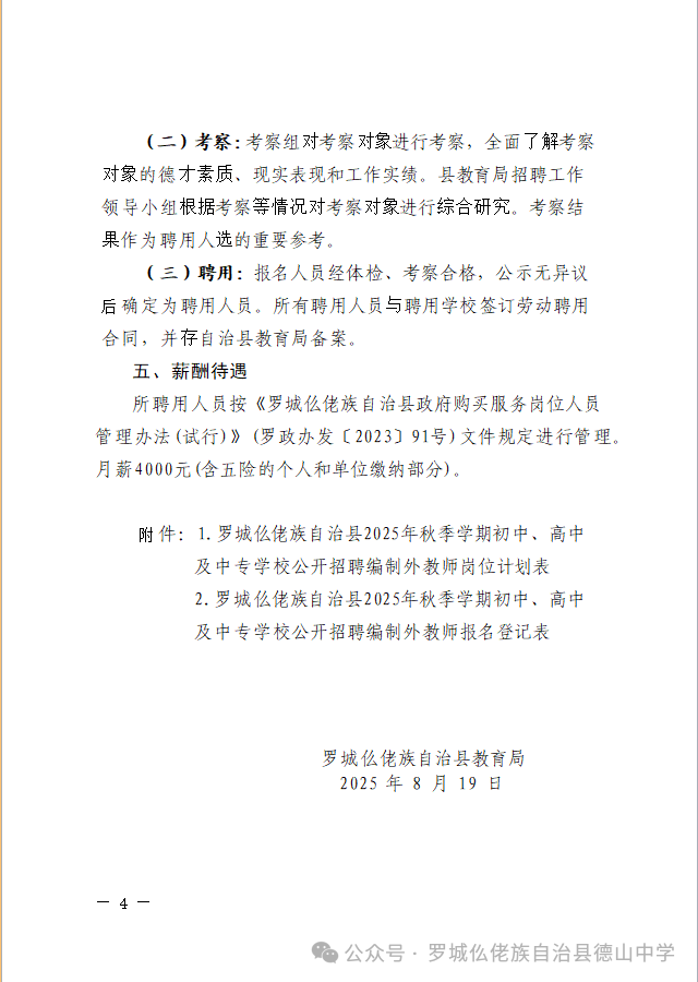 原文標題:羅城仫佬族自治縣2025年秋季學(xué)期初中、高中及中專(zhuān)學(xué)校公開(kāi)招聘編制外教師工作的公告