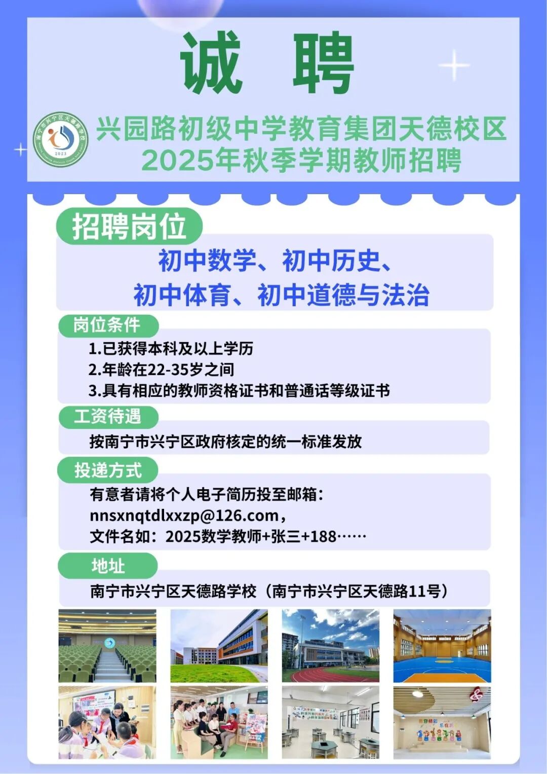 2025年南寧市興園路初級中學(xué)教育集團天德校區秋季學(xué)期教師招聘