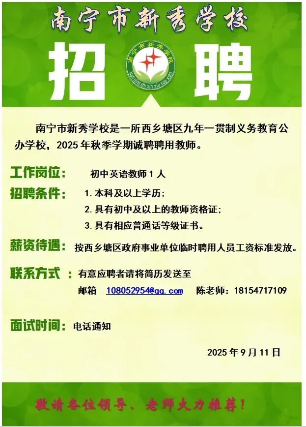 2025年南寧新秀學(xué)校招教師1人