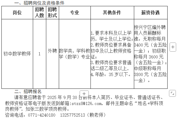 2025年南寧市興寧區三塘鎮四塘中學(xué)秋季學(xué)期招聘1人