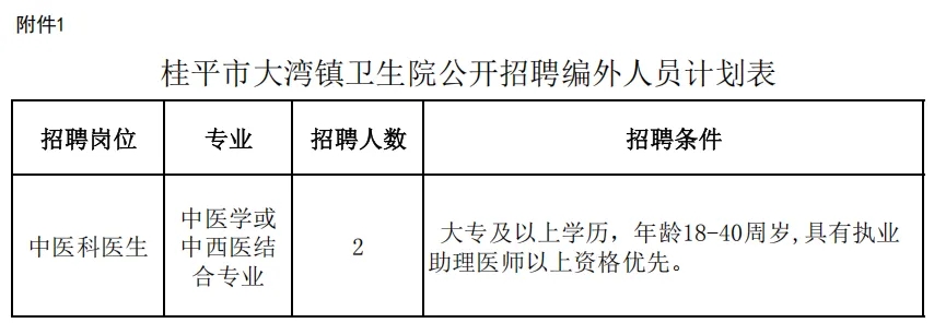 附件:1.桂平市大灣鎮衛生院公開(kāi)招聘編外工作人員計劃表