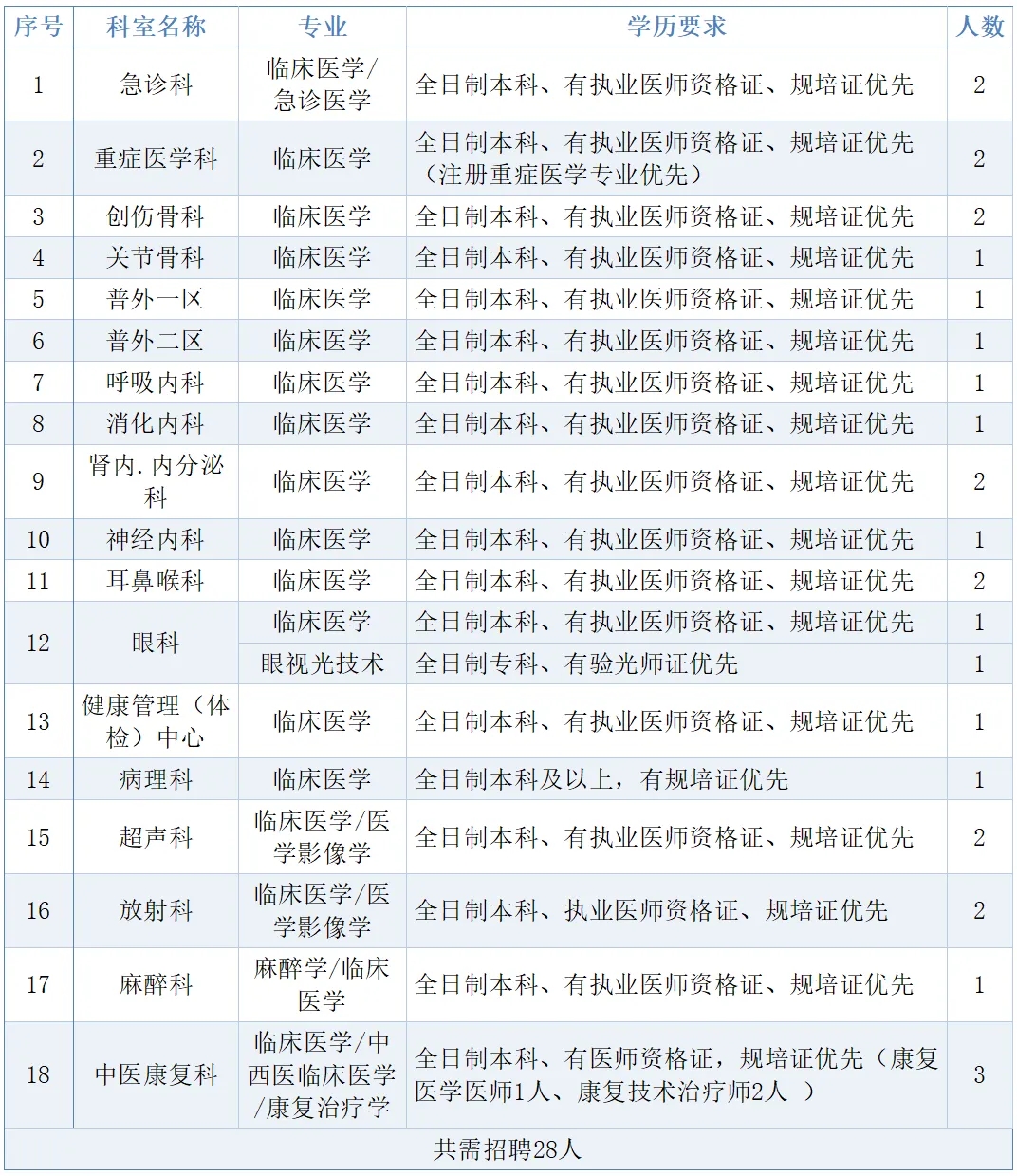 為了促進(jìn)醫院醫療業(yè)務(wù)發(fā)展,擬招聘醫學(xué)類(lèi)各專(zhuān)業(yè)技術(shù)人員, 招聘細則如下: