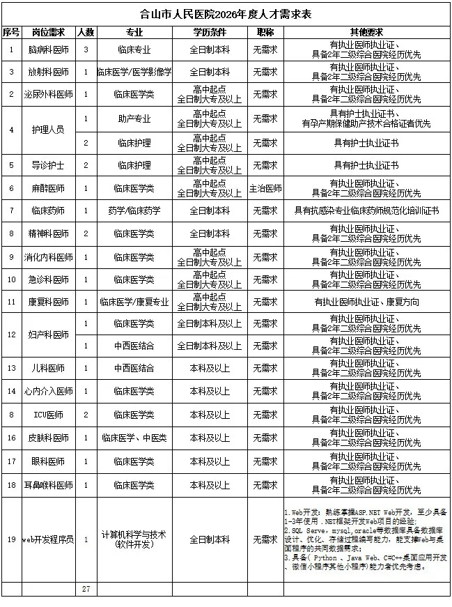 根據醫院發(fā)展規劃,現面向社會(huì )招聘專(zhuān)業(yè)人才,現將有關(guān)事項公告如下: