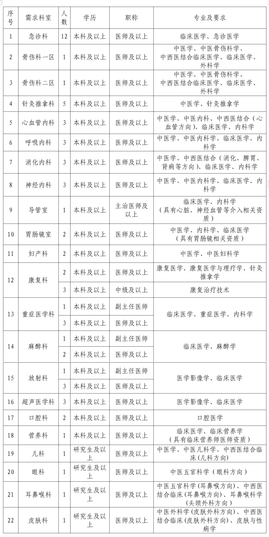 我院作為新興的一所地級市綜合性中醫院,也是全區唯一的一所地級市壯醫院,為不斷加強人才隊伍建設,進(jìn)一步提高醫療技術(shù)水平,為新院儲備優(yōu)秀人才,誠聘相關(guān)專(zhuān)業(yè)人才,共創(chuàng )中醫美好未來(lái)。
